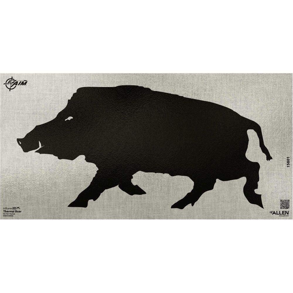 Unlock Precision with Allen Company's EZ Aim Thermal ID Target your essential companion for fine-tuning night vision optics and thermal technology-based scopes. The target features an exclusive patented treatment that reveals distinct heat signatures to segmented parts of the target enabling thermal imaging scopes to reveal details even in broad daylight. This technology makes daytime sight-in process for thermal scopes. The target showcases a lifelike boar silhouette sized 24-inches wide x 12-inches long. Each pack includes one high-quality target ensuring you have everything you need to fine-tune your shooting performance. Targets have an adhesive back that makes them easy to install on a target backer.