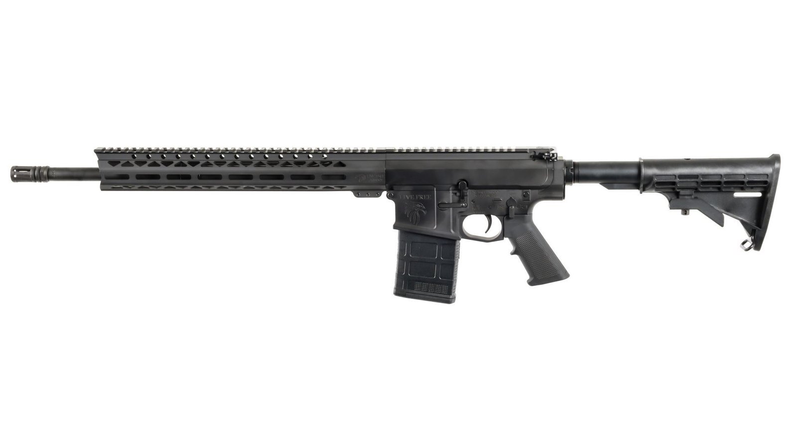 The LF308 Battle Rifle is an optics ready aluminum frame rifle. LF308 Battle Rifle features a 18” stainless steel barrel with a free-floating M-LOK handguard a single-stage mil-spec trigger. The LF308 Battle Rifle is built for your everyday freedom loving American. This rifle is ready to get down and dirty.