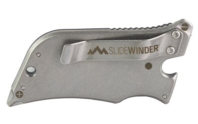 This nimble little multitool accepts standard utility razor blades and sports handy flat head and Phillips screwdrivers, pocket clip and an always welcome bottle opener. The slide opening blade locks securely and springs back into the handle automatically with the push of a button. Constructed from study glass/nylon and stainless steel, the SlideWinder makes a great addition to any toolbox, keychain, glove box, pants pocket, kitchen drawer and more.