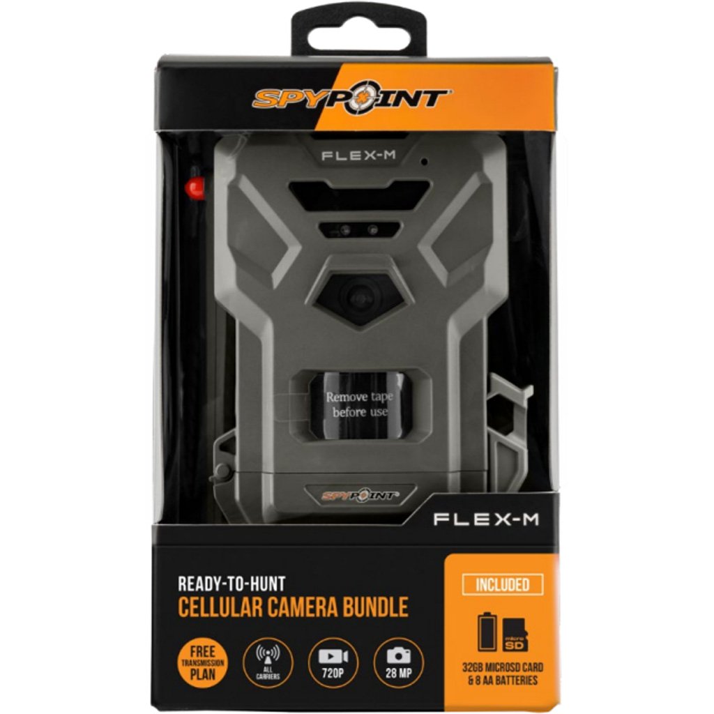 The SPYPOINT FLEX-M Dealer Bundle is a cellular trail camera kit designed for reliable remote monitoring with simple setup. It includes the FLEX-M camera, 8 AA batteries, and a micro SD card, allowing immediate deployment in the field. Dual SIM technology automatically selects the strongest available cellular network for consistent photo transmission using preactivated SIM cards. The camera captures up to 28 megapixel photos and 720p video with sound, with multiple capture modes to support varied monitoring needs.
